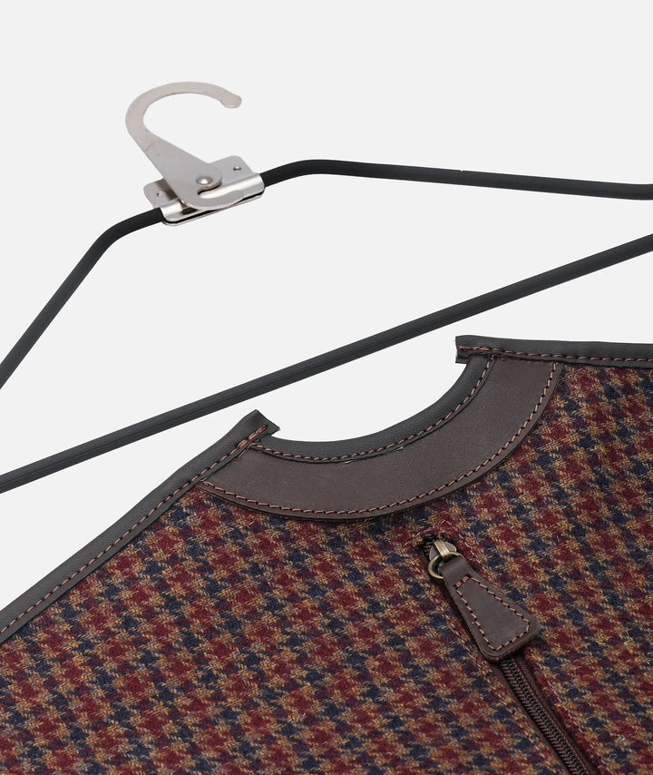 The My Style Bags Garment Bag in Dark Blue is perfect for both style and functionality. With a convenient cotton exterior and luxurious grained leather handle, this travel accessory is designed to keep your clothes safe and organized. It is also customizable and suitable for storing all types of garments and suits during your travels. The dark brown leather details and personalization options add a touch of sophistication. Pair it with ivory, dark brown, or burgundy embroidery for a stylish finish.