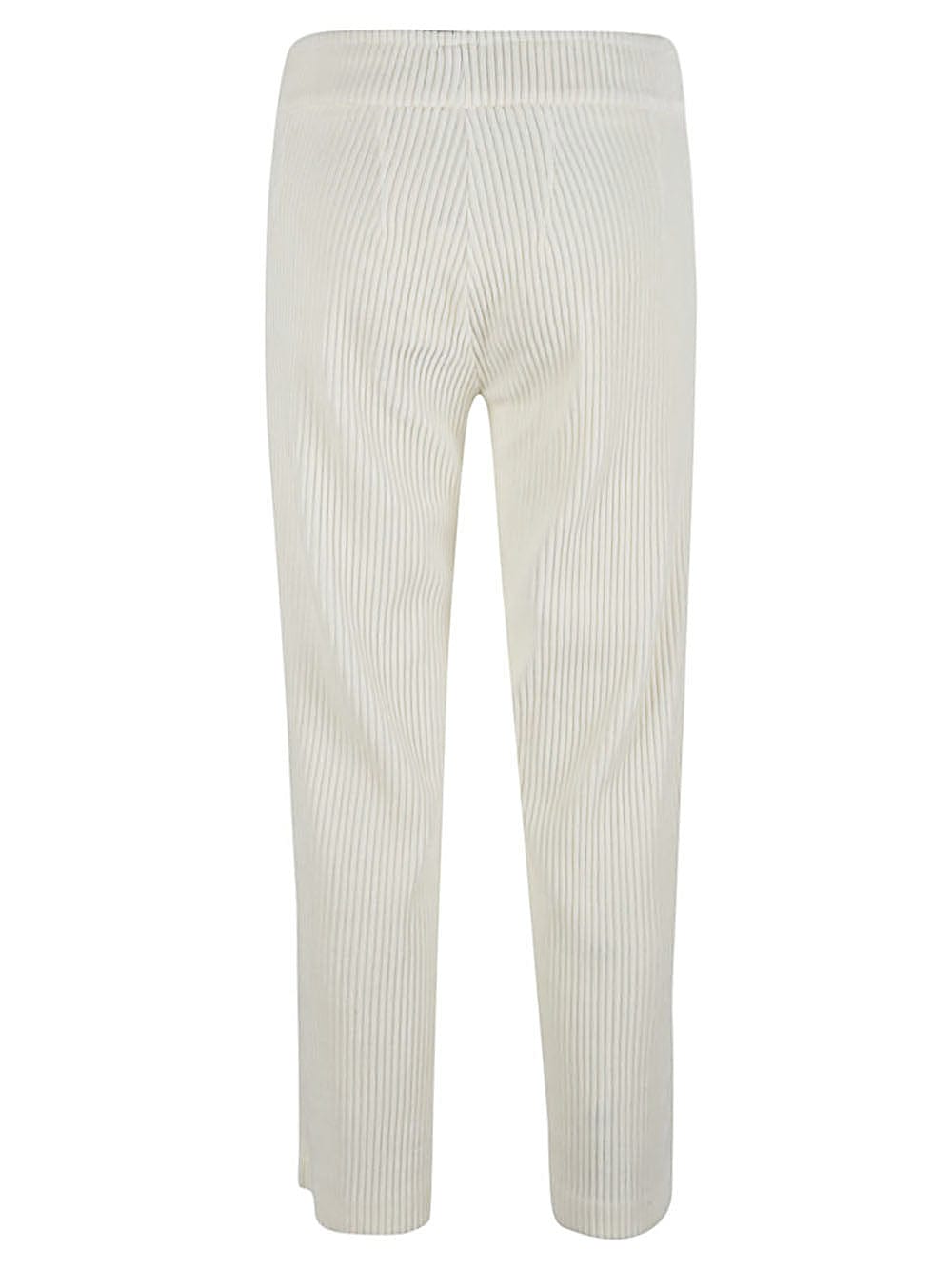 White trousers, relaxed wearable, wide leg, elastic band. Cropped Alex velvet trousers.